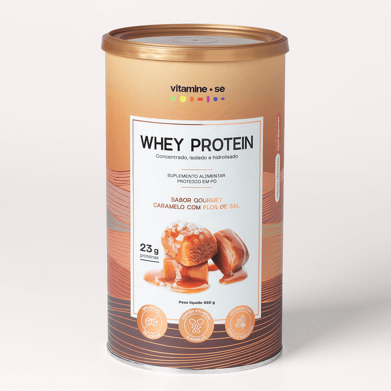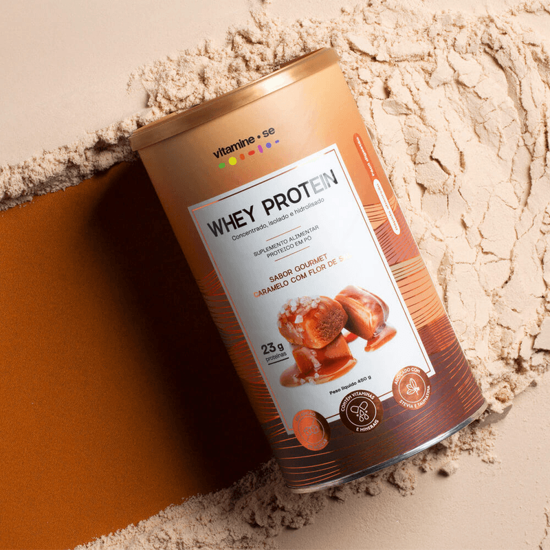 Sempre em busca de oferecer o que há de melhor no mercado da nutrição, nós da Vitamine-se desenvolvemos uma linha premium e exclusiva de wheys com matérias-primas de alta qualidade e sabores surpreendentes que você nunca provou, tudo isso para garantir uma experiência inigualável durante sua ingestão diária de proteínas. O Caramelo com Flor de Sal tem alta cremosidade, é adoçado naturalmente com stevia e taumatina, tem sabor fora do comum e conta com a fórmula mais completa e eficiente do mercado, que promete te surpreender desde o primeiro gole. Superversátil, é perfeito para potencializar receitas de dar água na boca. A gente garante: você nunca experimentou nada igual! Prove e conte para nós o que achou!
